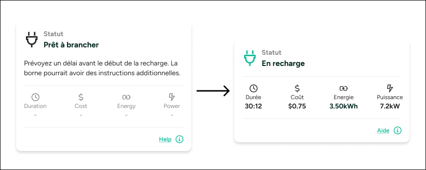 état de charge où elle affichera les paramètres de votre charge (durée/énergie). Il peut y avoir un léger