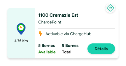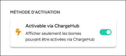 Vous pouvez également activer le filtre "activable via ChargeHub" afin d’afficher uniquement les bornes