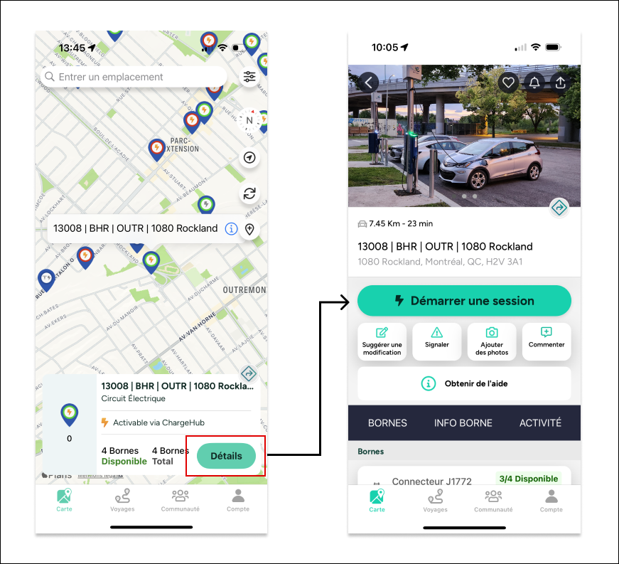 2) Une fois arrivé à une station compatible, ouvrez la page de détails de la station que vous avez