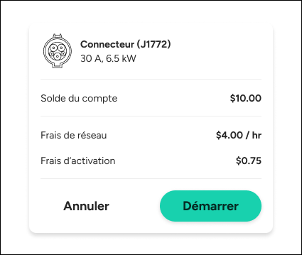 Appuyez ensuite sur « Démarrer la recharge » (ce bouton s’affichera uniquement si la borne est compatible).